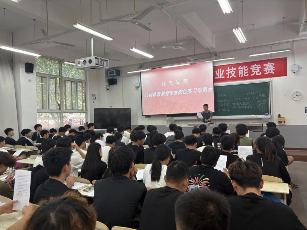 6月12日下午,“tyc522cc太阳成集团2023级体育教育专业岗位实习动员会”在1109教室召开。tyc522cc太阳成集团教学副院长任云兰、2023级体育教育专业全体学生、23级职业导师韩云、专业导师张静、张金棒参加动员会。会议由tyc522cc太阳成集团实训中心主任张金棒主持。
